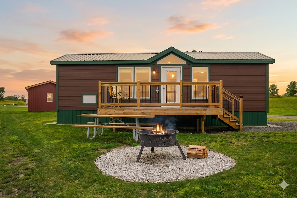 Útulné útočiště čeká v této okouzlující chatě o rozloze 420 čtverečních stop! Odpočiň si v prostorném posezení a jídelně, ideální pro relaxaci. Dobře vybavená kuchyň se může pochlubit velkou lednicí, mikrovlnnou troubou a elektrickým sporákem, které splňují všechny vaše kulinářské touhy. Dvě ložnice nabízejí pohodlí - jedna s palandami pro děti, druhá s plyšovou manželskou postelí velikosti Queen. V obývacím pokoji je pohodlná rozkládací pohovka. Osvěž se v koupelně s možností sprchy i vany. Tato jednotka má klimatizaci i topení.