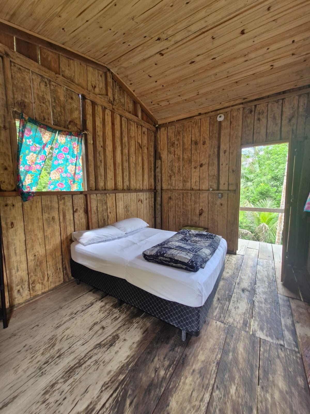 Chalé privativo na Mata Atlântica, às margens do Rio Ribeira, em Iporanga, dentro do Parque Estadual Turístico do Alto Ribeira. Possui cama de casal e de solteiro, ar condicionado, banheiro com chuveiro a gás, hidromassagem, mini cozinha com utensílios básicos - cooktop 2 bocas, frigobar, panelas, talheres, cafeteira Italiana e chalera eletrica. Deck com varanda suspensa, mini churrasqueira e fire pit. Uso Coletivo: Praia particular e sauna exclusivas para hóspedes. Local ideal para descanso.