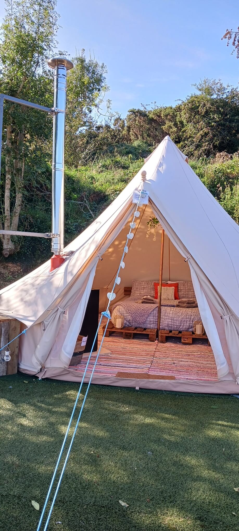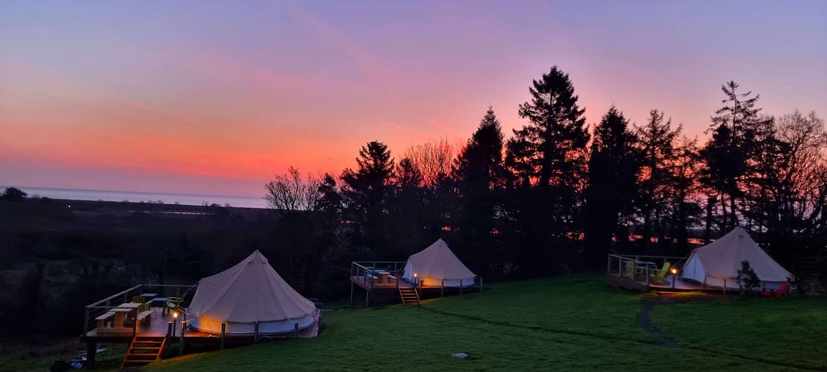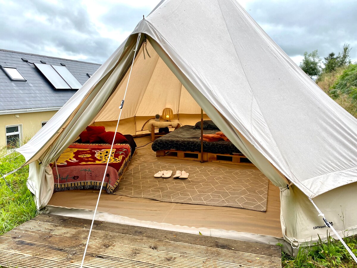 Objevte náš okouzlující 100% bavlněný zvonový stan na klidné louce s přímým přístupem k Waterford Greenway a bezplatným vstupem do zahrad Mount Congreve Gardens. Uvnitř si můžeš vychutnat útulnou manželskou postel s přehozy Foxford a kamny na dřevo. Probuď se do ptačího zpěvu, prozkoumej Greenway, kulinářskou scénu Dungarvanu nebo se vydej na túru po Comeraghs. Přijmi jednoduchost s lucernami a vodou ohřívanou sporákem. Důležité informace o rezervaci: U víkendových rezervací je pro naše stany Bell-Tents vyžadován minimálně dvoudenní pobyt.