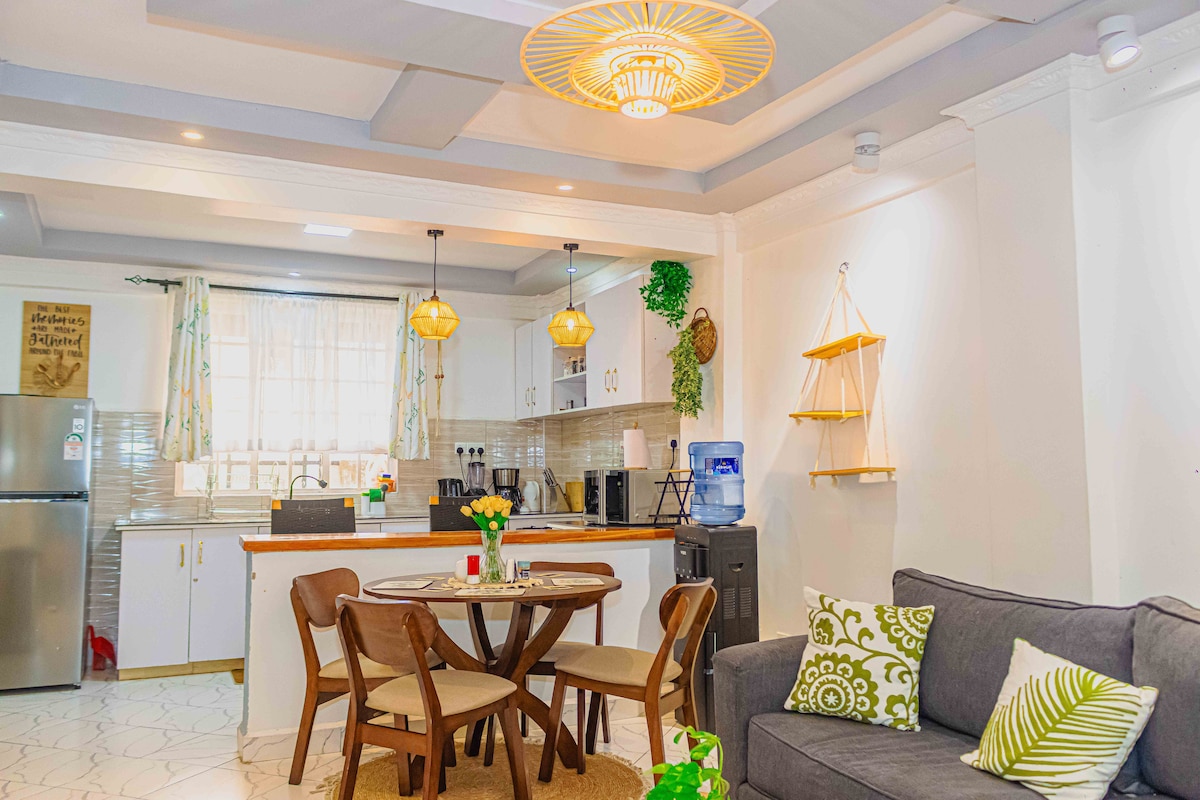 Náš pohodlný apartmán s 1 ložnicí má vše, co potřebujete pro svůj výlet do Nanyuki. Jednotka je vybavena elegantní kuchyní s otevřeným prostorem, prostornou ložnicí s kvalitní matrací od Dr. Mattress, vysokorychlostním internetem, chytrým TV, dostatečným parkováním a krásným výhledem na Mount Kenya na střeše. Z Cider Mall Nanyuki je to několik minut jízdy kolem Fox Hill Apartments, pak Livia Lane po vaší pravici až do California Plaza. Ideální základna pro objevování Nanyuki.
