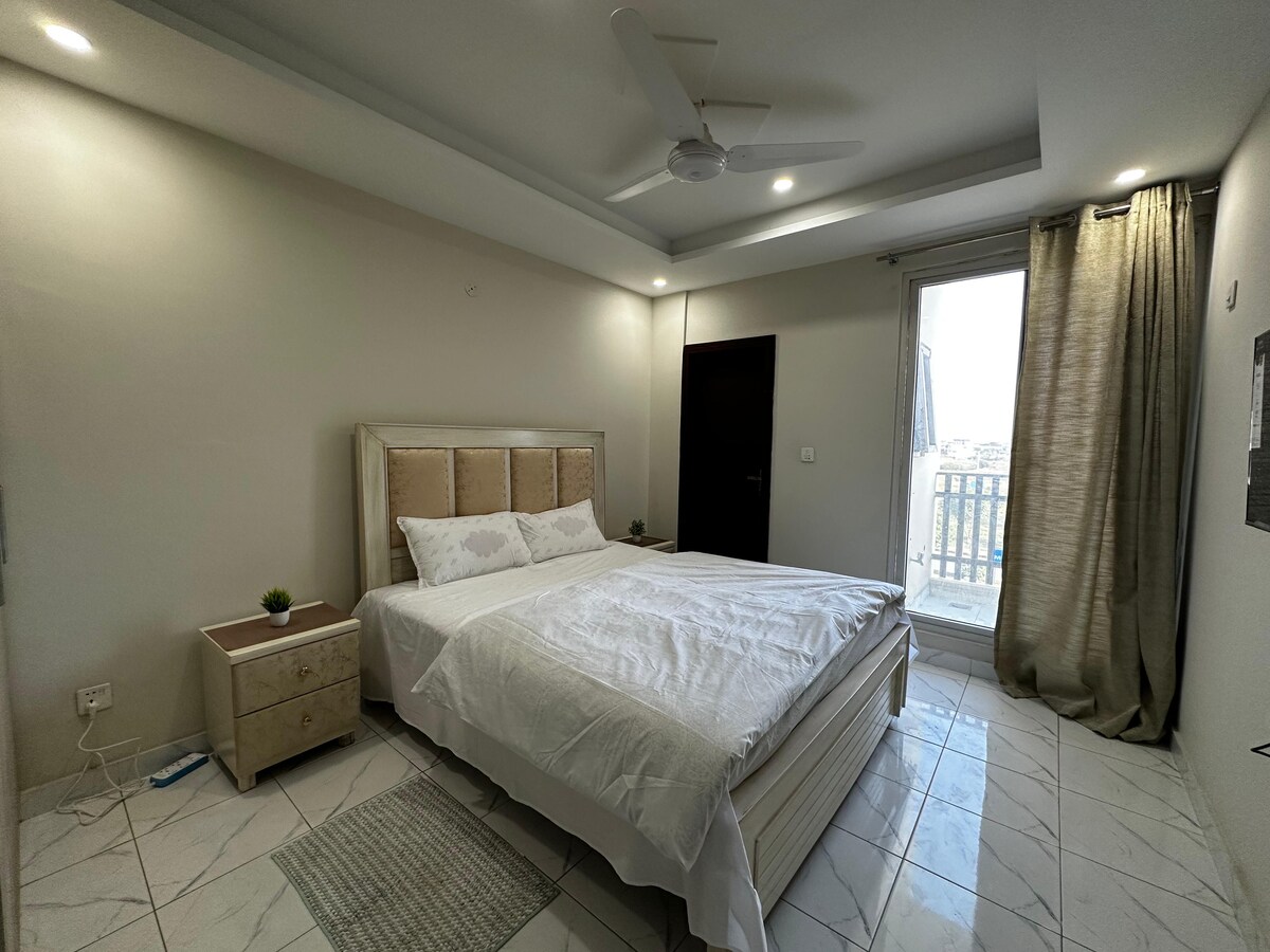 Modern Elegance Meets Mughal Soul ⭐️ After living in Istanbul, I wanted to bring that same blend of history and modernism back home. This isn't your typical rental. It’s a 1-bedroom space where I’ve hand picked Indo-Mughal details that give a home its soul. It’s airy and the light here is great for photos. I’ve designed the layout to feel spacious for a family to relax. The best part? The balcony overlooking Sandaymar Dam, it’s the perfect spot to catch the sunset. We have a parking for 2 cars
