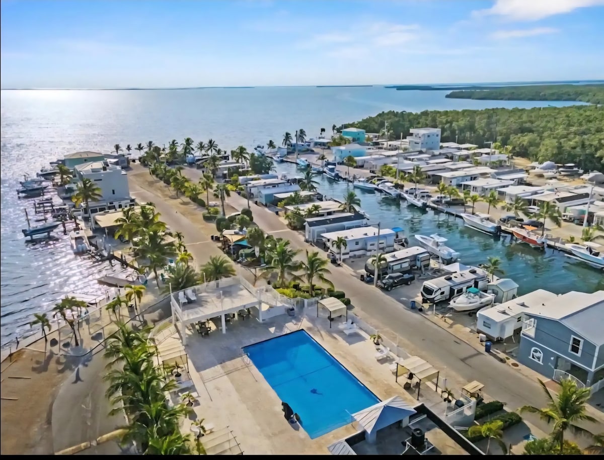Tento skrytý klenot rozhodně není obyčejný!!! Přijeď si užít kousek ráje v Key Largo a odpočiň si v tomto prostorném NOVÉM luxusním obytném voze. Má rampu pro loď, vnitřní/venkovní kuchyň s televizí, venkovní reproduktory, 2 houpací sítě, venkovní pohovku, venkovní jídelnu, samostatné ložnice včetně patrové místnosti, kde se může ubytovat 5–6 osob, 1,5 koupelny, 2 vyhřívané bazény, 2 pláže, volejbalové hřiště, hřiště a shuffleboard. V kempu je tolik outdoorových aktivit, že už nikdy nebudete chtít odejít!