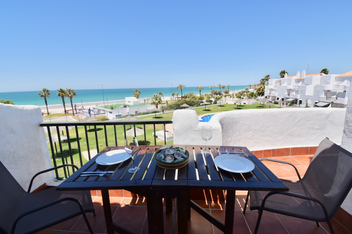 Soleado apartamento en planta baja con terraza y jardín privado es ideal para venir con niños pequeños. Totalmente equipado, amueblado y decorado en estilo mexicano, con el mobiliario como nuevo, aire acondicionado, y frente a las fabulosas playas de Chiclana, conocida como el Caribe Español. A 200 m de la playa del Castillo, a 1,2 km de la playa de la Barrosa (declarada MEJOR PLAYA DE ESPAÑA), y a 800 m de la playa de Santi Petri. No se admiten mascotas. Dispone de Wi-Fi y sillas para la playa