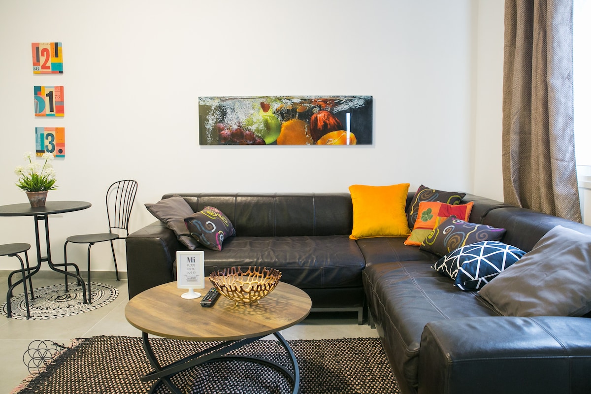 Newly renovated High-Design loft apartment in the most central location in Tel Aviv, in an authentic building mostly designed for tourists. Renovace byla přizpůsobena tak, aby sloužila našim hostům na maximální úroveň pohodlí. Apartmán má ložnici s luxusní manželskou postelí a přilehlé komody, šatní skříň a luxusní jednolůžkové křeslo. Prostorný obývací pokoj se super pohodlnou pohovkou!! Dvoulůžková jídelna Kuchyň vybavená mikrovlnnou troubou (v případě potřeby sporák).