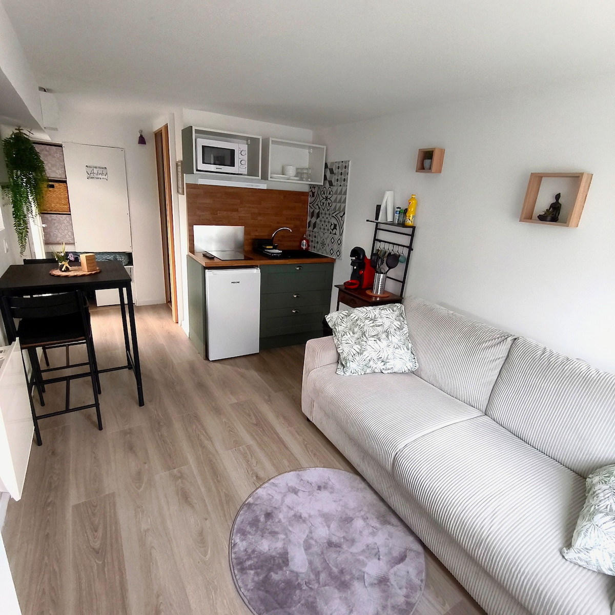 Passez un agréable séjour dans cet hébergement confortable tout fraîchement rénové .avec petite terrasse. logement entier avec entrée autonome . une dépendance de maison auquel vous trouverez . une salle de bain . une kitchenette un canapé-lit pour deux personnes. une place de parking. à 1 minute à pied vous trouverez un camion pizza. et à 5 minutes à pied vous trouverez -un macdo -un Quick -un KFC - Auchan -tabac -pharmacie -station essence -borne de recharge voiture électrique etc..