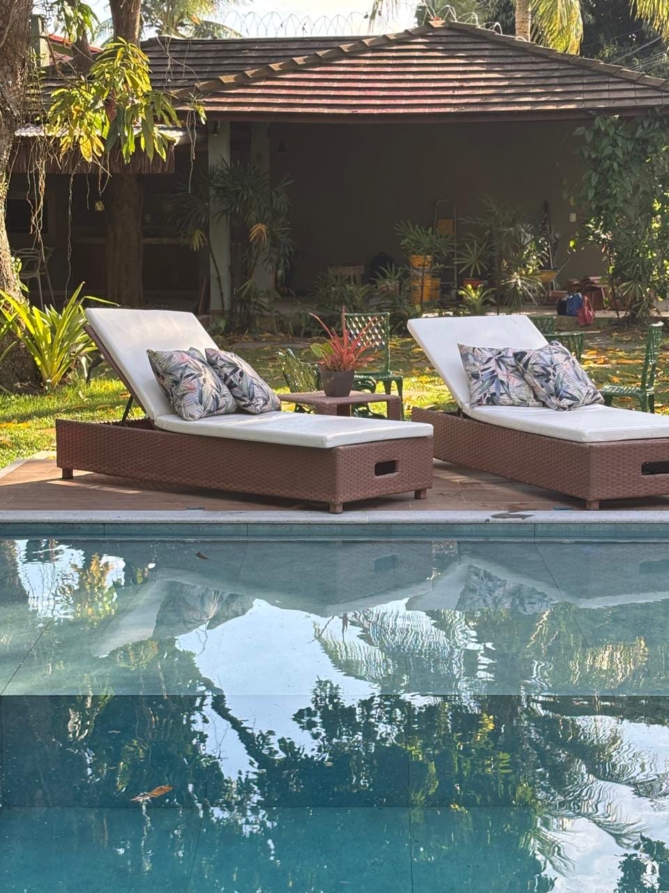 Odpočiň si s celou rodinou v tomto klidném ubytování na pláži Taperapuan, nejslavnější v Porto Seguro. Dům s 800 metry pozemku, bazénem s velkou pláží, 3 ložnicemi se skříněmi a klimatizací. Espaçosa TV room. Velký gurmánský kout s novou mrazničkou. Obrovská garáž. Velmi dobře vybavená kuchyň, velká lednička. Praní v nové pračce. Krásná herna 🦋! Domeček pro panenky 🧸! Asistent, který se stará o dům denně, přináší více pohodlí♥️!