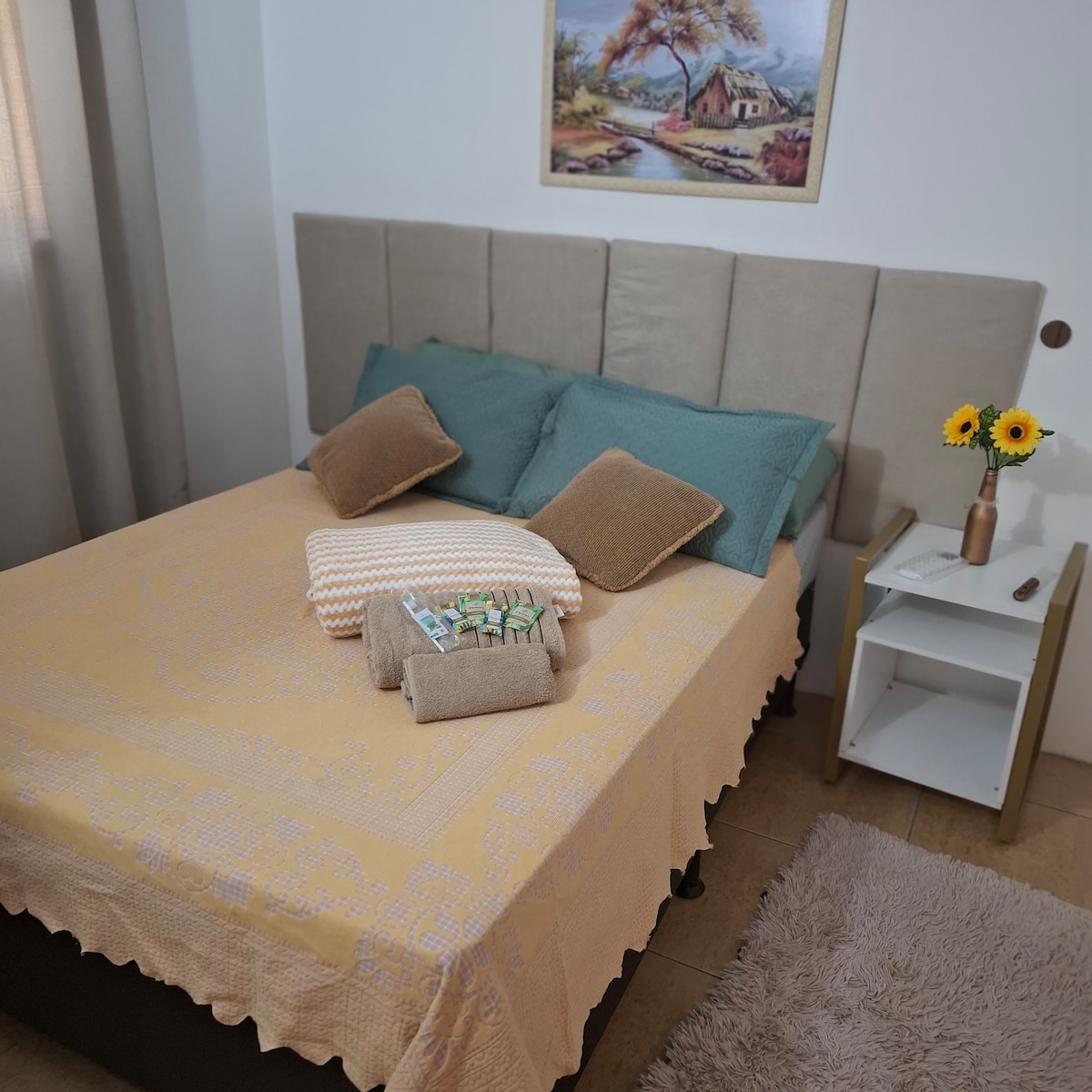 Kompletní garsonka (46 m²), pohodlná a útulná. S garáží. Klidná čtvrť, blízko všeho. Ideální pro páry nebo osoby cestující za prací, zábavou nebo studiem. Dobrá volba také pro ty, kdo chtějí poznat pláže Costa Verde-RJ. Náš prostor se nachází 10 minut (autem) od ocelárny Térnium, 3 minuty od CEFET a SENAI, v blízkosti autobusového nádraží Itaguaí, trhů, posiloven... Autem je to 20 minut od pláže Itacuruçá, výchozího bodu pro pláže a ostrovy.