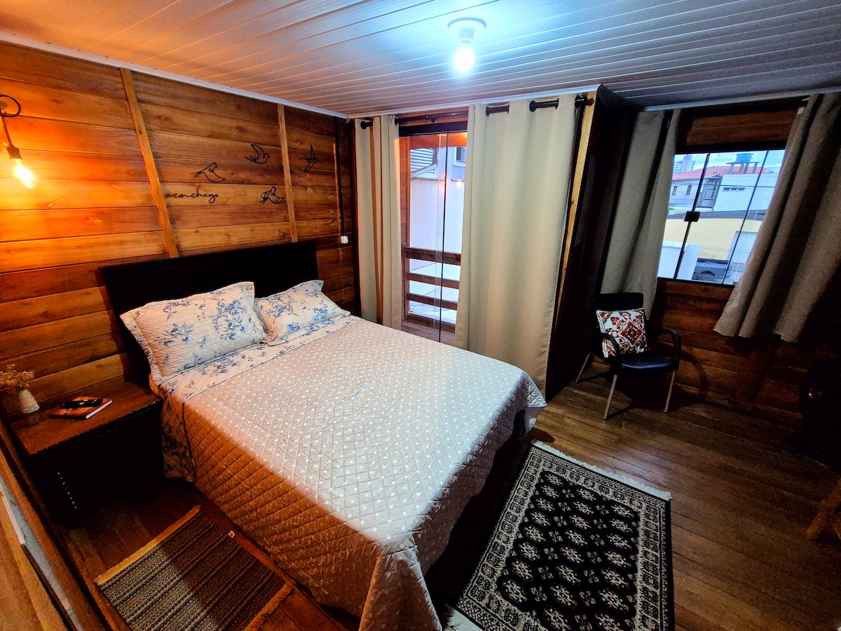 Užij si stylový zážitek na tomto místě. Dřevěný hostel ve stylu s grilem, útulný a stylový. V horním patře je ložnice s manželskou postelí, manželskou matrací, skříní, koupelnou a balkonem. Dole je TV místnost, kde máme manželskou postel Queen jako pohovku a ubytování pro 2 osoby. Jídelní stůl, kuchyň a venkovní gril s lavabo. Soukromý dům a dvůr. It is in the center of a street of traditional wooden houses of the city's culture 5KM FROM the beaches.