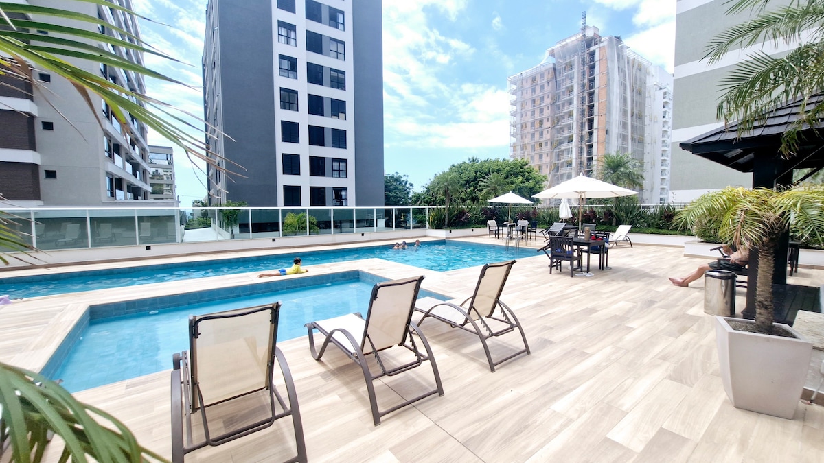 Apto com Sacada churrasqueira, vista mar, piscina.