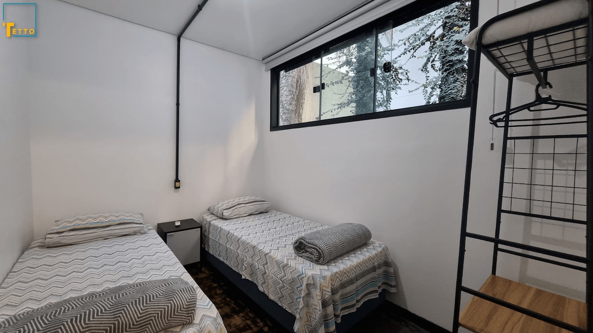 2 bedroom SHIPPING CONTAINER TINY APPARTMENT with 1 private bathroom. HIGH SEASON Rate for 4 PEOPLE. MAX occupancy 5 people. Additional R$80 for each extra guest per day. Please ensure you indicate the TOTAL NUMBER OF GUESTS when booking. Surround yourself in style in this cozy space 350m from the beach. Apartment built from recycled shipping containers, clean, airy and very well located, close to supermarkets, bakeries, pharmacies, diversified commerce, restaurants and bars.