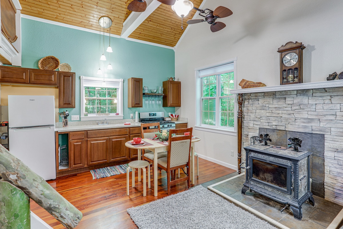 Co se nám na tomto ubytování líbí:<br>Jeden blok od historického náměstí, kde můžete slyšet lidi, kteří se shromáždili a hrají lidovou hudbu během většiny mírných nocí. Vybaveno plynovými kamny, vířivkou a bleskově rychlou venkovskou wifi 40Mbp (tato chata má vyšší rychlost než naše #45 vedle). Celá cesta je zpevněná. Představte si studio s vlastní koupelnou – snadný vstup, snadný výstup. Snadné pohyb po okolí. <br><br>Hned vedle je naše chata Pinewood Wilderness Way č. 45 (přiveďte své přátele, ale zachovejte si soukromí).