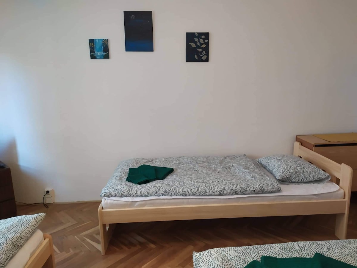 Slunný podkrovní byt v klidné části města v blízkosti centra i lázeňského lesa. Prostorná ložnice nabízí manželskou postel o velikosti 2x2m. V obýváku je gauč, který lze rozložit na velikost 195x150cm a umožňuje přespání dalších dvou osob. V obývací místnosti je kuchyňská linka se sporákem, dřezem, ledničkou, nádobím. V kuchyní jsou také barové židle. V Bytě je wifi a dvě televize. V prostorné koupelně je malá dřevěná sauna pro max. 2 osoby. WC je samostatně. Pěšky jste za 5 minut v centru.
