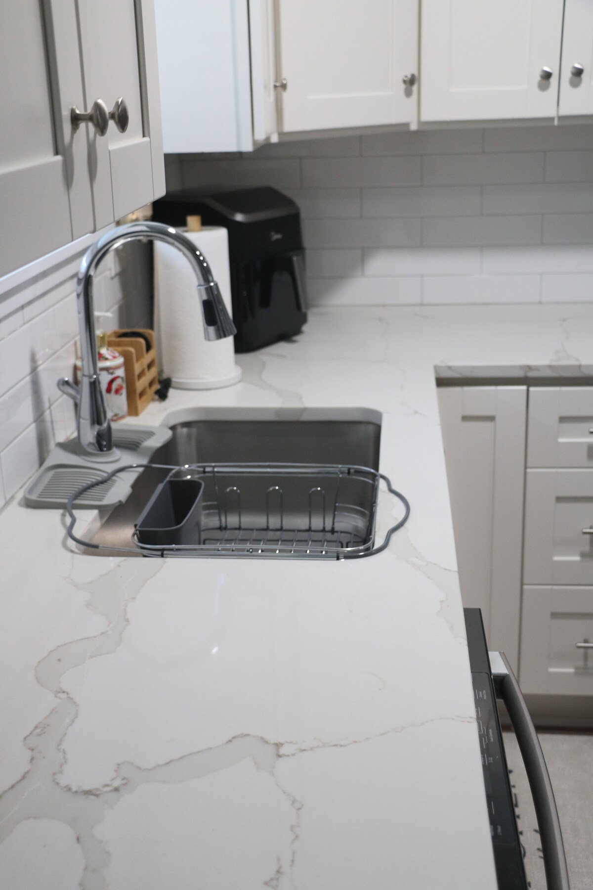 Odpočiň si v tomto klidném útočišti. Prostorné apartmá s jednou ložnicí a druhou postelí v sousedním pokoji. Velká koupelna s vířivkou a sprchou. Kuchyňský kout s mikrovlnnou troubou, toustovačem, kávovarem a velkou lednicí. Žádný sporák ani trouba. Soukromý vchod a parkování na místě. Klidná předměstská čtvrť v blízkosti jezer a stezek. Hostitelé bydlí nahoře a jsou ti k dispozici, aby byl tvůj pobyt nezapomenutelný. Zákaz kouření, zákaz neregistrovaných hostů. Tiché hodiny od 22:00 do 7:00