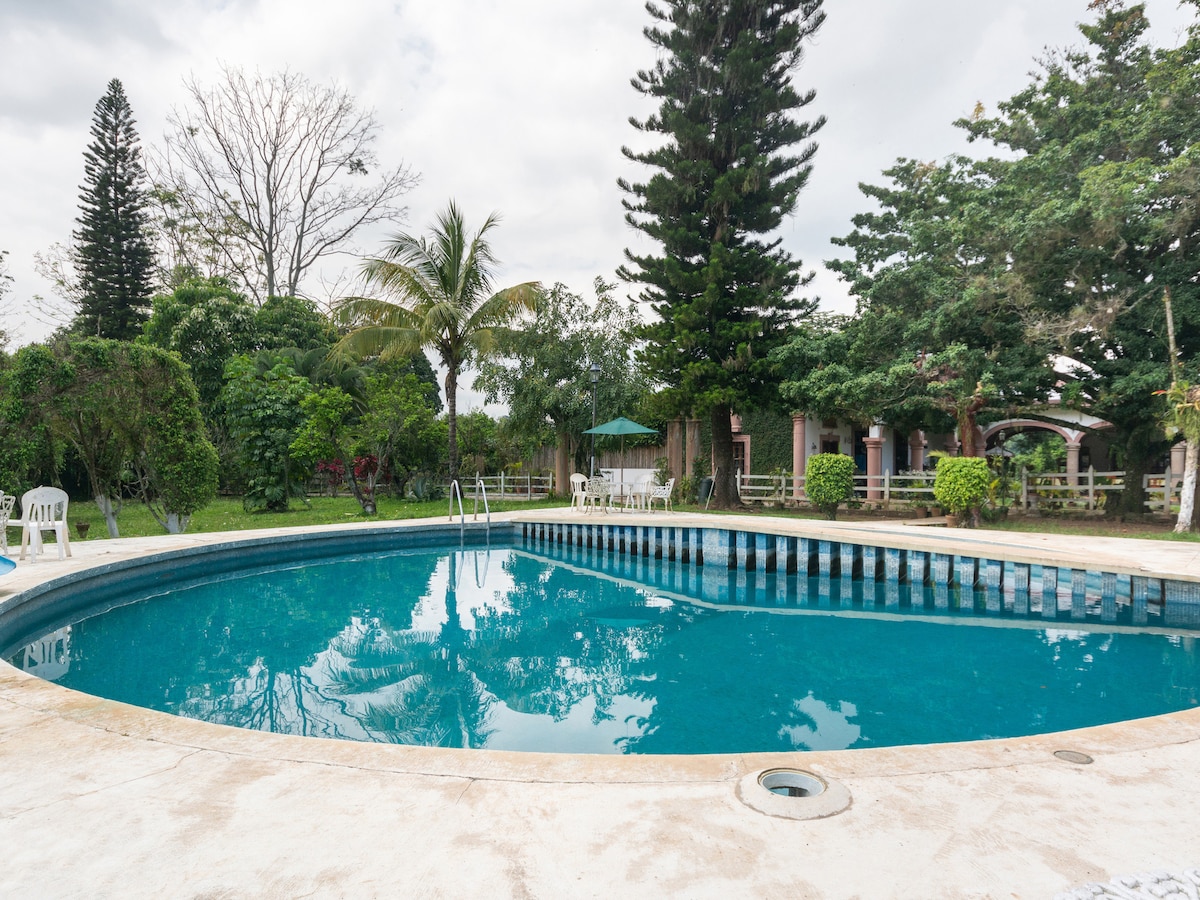 V ceně jsou zahrnuty 2 dospělé osoby a 2 malé děti do 4 let. Nachází se v mlžném lese (mezofilním), kde si můžete užít přírodu, krásu jeho krajiny a pozorovat širokou škálu kapradin, bromélií a orchidejí původem z této oblasti Místo je ideální pro pěší turistiku, protože nemovitost má více než 40 hektarů lesa, cest, stezek, potoků a malého vodopádu. Nachází se 15 minut od města Teziutlán, Pue., snadná komunikace.