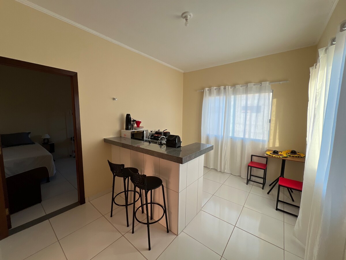 Bezpečné a dobře umístěné ubytování. Nachází se v centru města, kde je vše blízko, před autobusovým nádražím, jsou zde supermarkety, lékárna, pekárna, restaurace, CEASA (kde se v sobotu koná veletrh), nákupní centrum, hamburgerový obchod, pizzerie, banka SICOOB, čerpací stanice atd. Funkční apartmány, velmi svěží a vzdušné. Ručníky a ložní prádlo jsou k dispozici. – Nachází se ve druhém patře se schody. – Není zde žádné soukromé parkoviště, pouze autobusové nádraží.