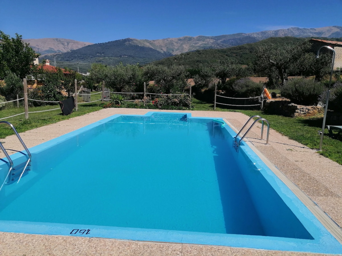 100% soběstačný dům s bazénem postavený podle filozofie udržitelnosti uprostřed usedlosti s nádherným výhledem na přírodní rezervaci Garganta de los Infiernos a údolí Jerte. Farma má 2 hektary půdy, kde se můžete procházet mezi třešněmi, švestkami a dalšími ovocnými stromy, s ekologickými sady, rybníky a potokem, který ohraničuje farmu. Zpěv ptáků, zvuk tekoucí vody, sklizeň v zahradě... Čistá příroda TR-CC-00429