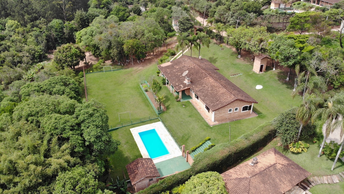 Nachází se 50 km od São Paula, s příjemným podnebím a krásnou přírodou, což z něj činí ideální místo pro ty, kteří hledají klid a pohodu. Krásná zahrada. Okouzlující přízemní dům s přirozeným světlem, prostorným balkonem s výhledem do zahrady a útulnou výzdobou. Dům má 3 ložnice, včetně jedné koupelny, obývací pokoj s krbem, integrovanou kuchyň a gurmánský prostor. Bazén, dřevěná terasa, prostor pro grilování, fotbalové hřiště. Jezero dodává prostředí zvláštní atmosféru.