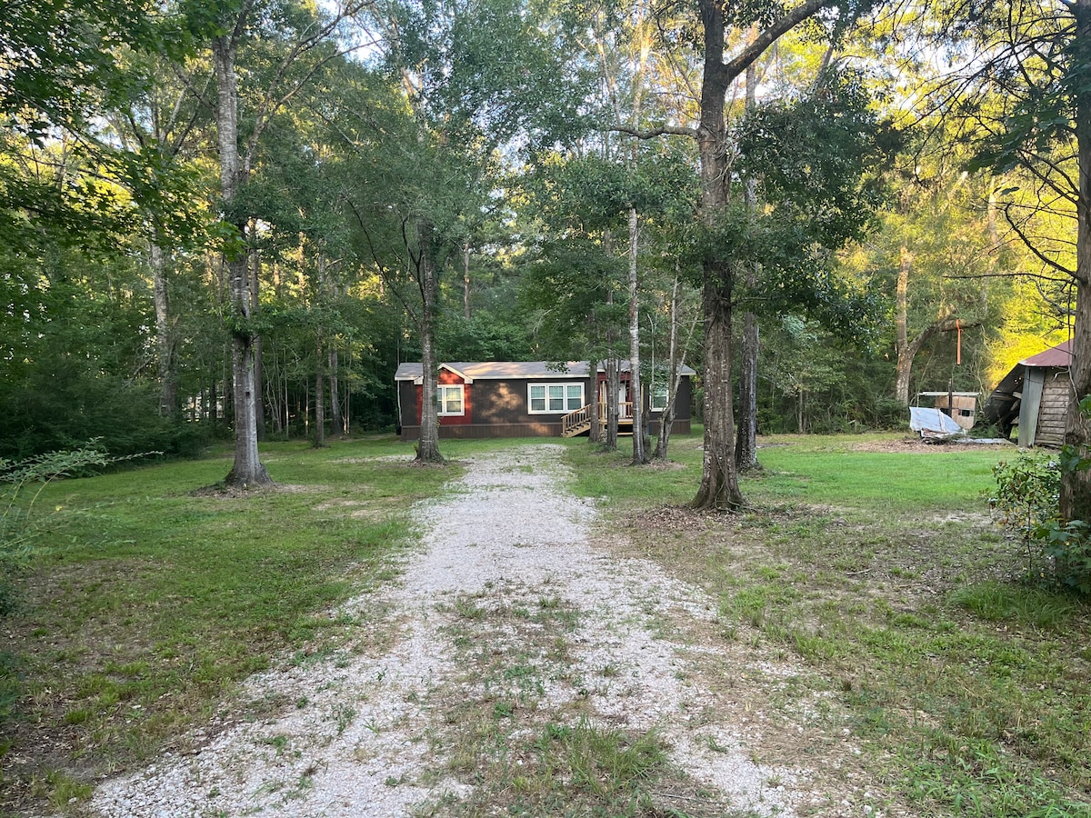 Vítej v „The Hunters Hut“, soukromém, útulném malém prostoru v Pineywoods v Kountze v Texasu, jen 5 metrů od hlavního domu, ale přesto soukromém. Nedaleko Big Thicketu. Odpočiňte si na verandě s oblíbeným nápojem nebo si odpočiňte ve vlastní vířivce. Vychutnej si společné molo u rybníka nebo vyzkoušej rybaření s návnadou (přineste si vlastní vybavení). Rozpal si vlastní oheň pro dokonalý večer pod širým nebem – dobrodružství kempování s pohodlím glampingu. Prostorné pro jednoho, útulné pro dva.