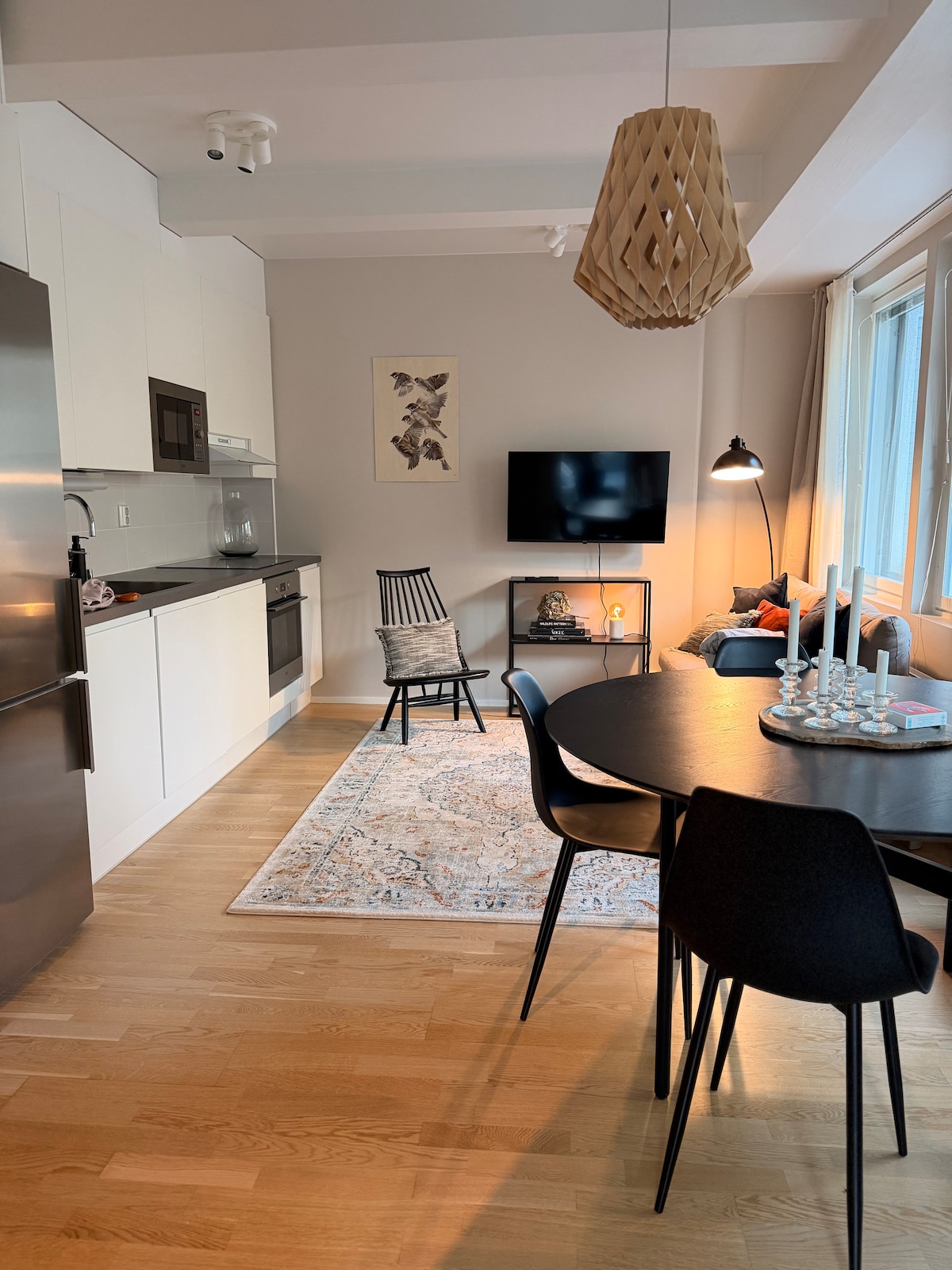 Raikas, puhdas huoneisto. Uudet kalusteet ja skandinaavinen tyyli luovat lämpimän tunnelman. Alkovissa sänky kahdelle + vuodetuolissa lisävuode. Iso lasitettu parveke. Ilmainen pysäköinti talon autohallissa! Talon edessä sijaitsevat raitiovaunupysäkit 9T ja 8 vievät sinut keskustaan 14 minuutissa. Länsiterminaali 2:n on 5 minuutin kävely - tee ihana päivämatka Tallinnaan. Rennon urbaani ympäristö ja merellinen fiilis. Läheltä löytyy paljon eri maiden ruokaravintoiloita.