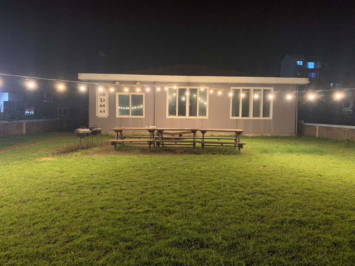 Dobrý den, nacházíme se 1 minutu chůze od pláže Sehwa Je to krásný rodinný dům s výhledem na přístav. ~^^ 1 minuta chůze na pláž, restaurace, supermarkety, obchody s potravinami a další jsou v okruhu 10 minut chůze Všechny jsou k dispozici a vše lze doručit ~ ^^ Jednou z výhod je, že můžete pěšky docházet do obchodů Hanaro Mart, Paris Baguette, Burger King, Daiso, Starbucks a dalších. Je to ideální místo, kde si můžete užít grilování a posezení u ohně.👍 V případě deště však grilování není možné, takže prosím vás o pochopení🙏 Přijďte si užít čas a udržujte prosím pořádek a tříděný sběr Děkuji😊