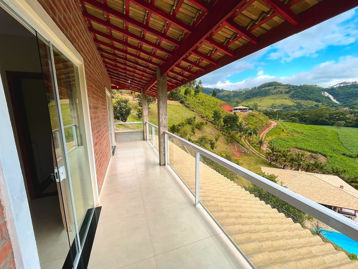Místo převzaté z města s výhledem na hory a spoustou přírody kolem. Perfektní místo k odpočinku a pozorování západu slunce. It has a river with waterfall within the property accessed by trail. Velký bazén, gril a kulečníkový stůl. 4 krytá parkovací místa. V domě je ohřev vody pomocí elektrických sprch a kuchyň je dobře vybavena (kromě plynového sporáku je zde kamna na dřevo). Palivové dřevo se prodává samostatně, 35,00 R$. Wifi rádiem. rychlost 30Mb.