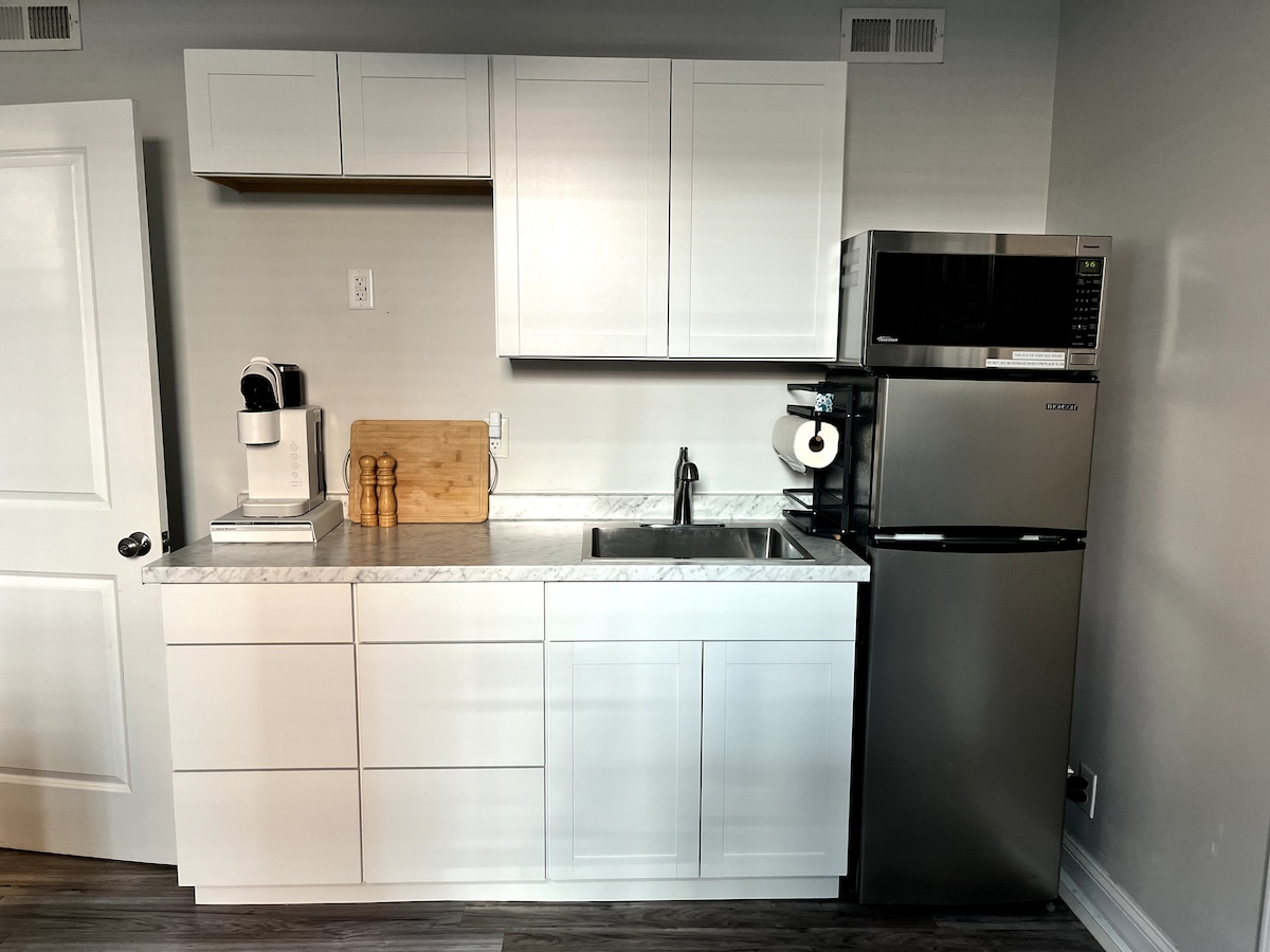 Užij si tento malebný byt 1 BR v rodinné čtvrti v historické čtvrti Tree Streets. Ubytování je nově zrekonstruované, plné světla a je zcela soukromé a tiché - s pohovkou navíc. Ve druhém patře. Krátká procházka do srdce JC nebo do kampusu ETSU. Toto ubytování je ideální pro jednu osobu nebo pár, který cestuje s dítětem nebo bez něj, a má vše, co potřebuješ, aby ses zabydlel/a na jednu nebo dvě noci, týden nebo dva. Snadné uvnitř, bezstarostné. Soukromá terasa a gril.