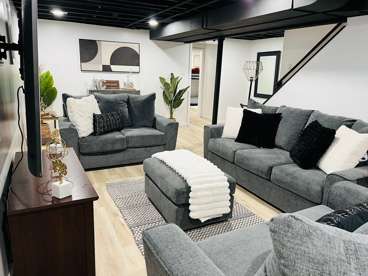 Welcome to Overland Park Retreat in the Heart of Old Town Overland Park! This charming 2-bedroom, 2-bathroom home blends modern comforts with timeless charm, offering a perfect retreat for any traveler. Enjoy the open-concept living area with stylish furnishings and natural light. The fully equipped kitchen features stainless steel appliances and granite countertops. Need to work? High-speed fiber internet is available throughout the home. Relax and stream your favorite shows on the massive TV!