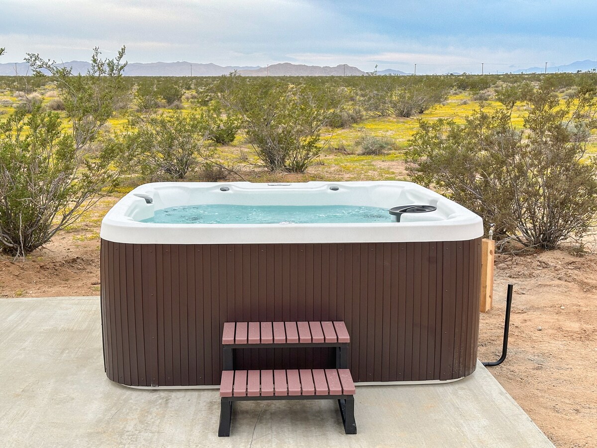 A private high-desert sanctuary designed for deep rest, reconnection, and slow mornings beneath wide open Joshua Tree skies. Soak in the cedar hot tub under the stars, plunge cold at sunrise, and unwind by the fire as the desert goes quiet around you. Thoughtfully designed with bespoke decor, linen sheets, handcrafted ceramics, curated sound, and fast Wi-Fi. Quiet, peaceful, and intentionally crafted for a rare, restorative desert escape. Reconnect with nature, with yourself, or someone you love