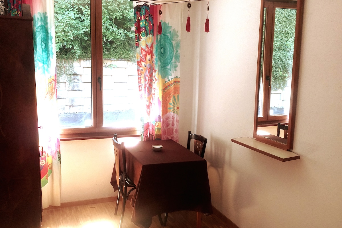 Velmi světlý byt s 2 balkony. Jeden je orientovaný na jihovýchod, s výhledem na společnou zahradu, takže je zde klid, ideální pro snídani a slunečný oběd. Prostorná ložnice s kancelářským stolem. Byt se nachází přímo v centru města, tak v blízkosti všech potřebných služeb. 3 minuty chůze od náměstí Riponne a jeho metra, čtvrti Flon. 20 minut pěšky od nádraží. V okolí bytu se nachází několik autobusových zastávek. Kryté parkoviště Valentin je vzdáleno 1 minutu chůze.