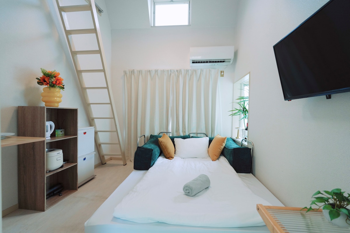 東京都江東区に位置する当施設は、都営新宿線「大島駅」から徒歩5分の好立地!新宿、秋葉原、渋谷、浅草、東京駅など主要エリアへのアクセスも抜群で、観光やビジネス出張に最適です。 ホテルのようなデザインの民宿の一部屋で、ワンルームタイプです。 【103#Blueberry】最大4人 ・ベッドタイプ:幅1.4mのベッドx2台 ・面積:20㎡ ・専用キッチンとバスルーム付き、他のゲストと共用しません。 ・共用スペース:電子レンジと無料洗濯機をロビーに設置 スーパーや商店街に隣接しており、食材や日用品の買い物がとても便利。専用の浴室とキッチン完備で、自炊も可能なので、食費を抑えたい方にもおすすめです。 リーズナブルな価格設定で、長期滞在にもピッタリ!快適な空間をお手頃な価格でご提供します。ホテルのような安心感と、自宅のようなくつろぎを兼ね備えたお部屋で、ゆったりとお過ごしください。 東京での滞在を、便利・快適・経済的にするなら、ぜひHATAGO YUKI HOUSEへ!