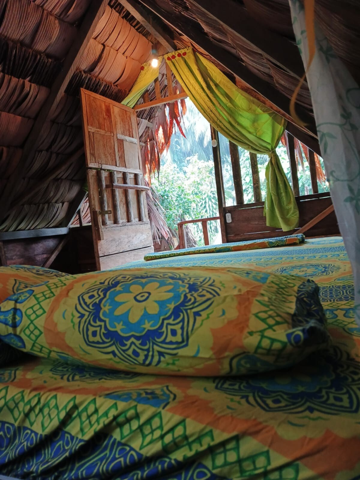 Soukromá chata ideální pro páry. Má sprchu, vlastní koupelnu a manželskou postel. Má balkon s konferenčním stolkem a je obklopen zahradami, kde můžeš pozorovat ptáky a motýly. Hostel se nachází v blízkosti pláže, asi tři minuty chůze. Nachází se ve velmi klidné části komunity, bar, před hostelem je kojene a za ním je mangrovník. Je to perfektní místo k odpočinku a užívání si přírody.