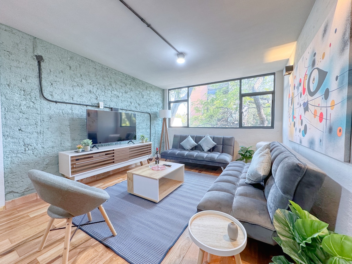 Apartment in La Condesa. Features: AIR CONDITIONING, high-speed internet, fully equipped kitchen, washer, dryer, and a TV with Netflix, Amazon Prime, and Disney Plus accounts. It includes 1 king-size bed, 2 full-size beds, 3 twin beds, and 2 sofa beds. Located in a SAFE neighborhood and close to restaurants. IMPORTANT: Please make sure to select the correct number of guests when booking.