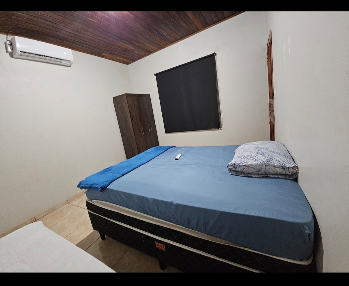 Kitnet mobiliada com garagem, localizado na avenida Londrina, próximo ao redondo do módulo 05. Possui 3 camas, sendo duas de casal e 1 de solteiro, fogão, geladeira, máquina de lavar roupas, chuveiro elétrico, cozinha... Em um dos quartos tem Ar condicionado e no outro ventilador.