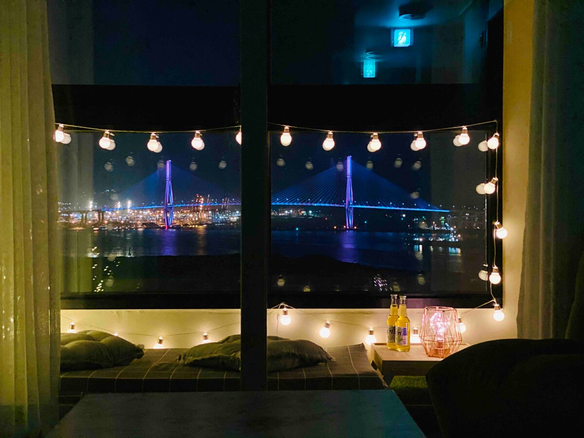 Hodnocení spokojenosti 4,99 / 1 láhev vína / vířivka / soukromý pokoj / výhled na most Busan Port Grand / „Yeongdo All“
