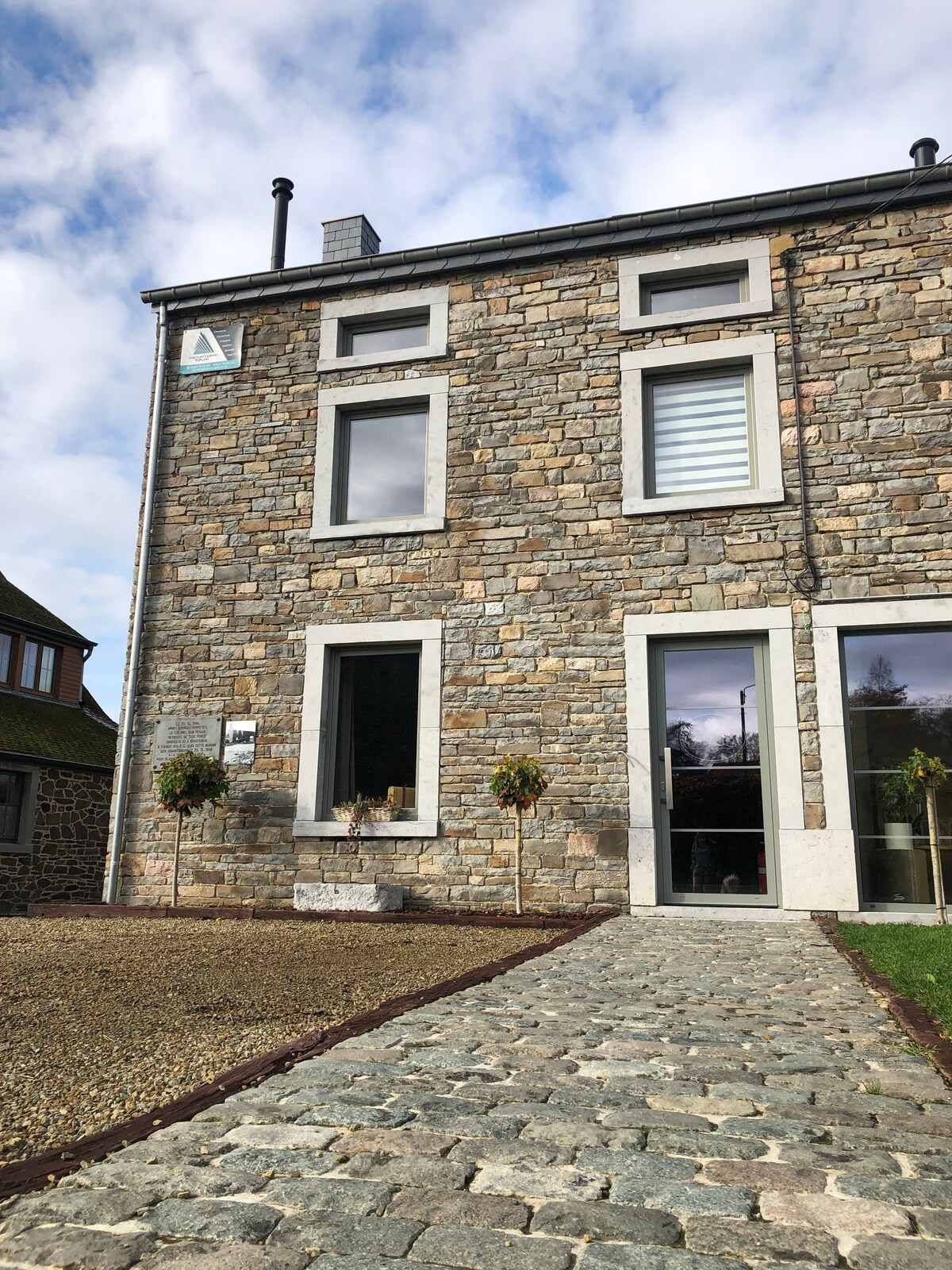 This is a private small townhouse set in a classic old stone house. Nachází se v srdci vesnice Marcourt v krásných belgických Ardenách, byla zrekonstruována a je připravena ubytovat dva dospělé a dvě děti. Hlavní ložnice se nachází pod střechou ve velkém mezipatře s výhledem na hlavní prostor. Soukromá zahrada s grilem, židlemi a stolem. Čerstvá vejce z naší stodoly a med od našich včel si můžete zakoupit každý den. Rádi tě přivítáme.