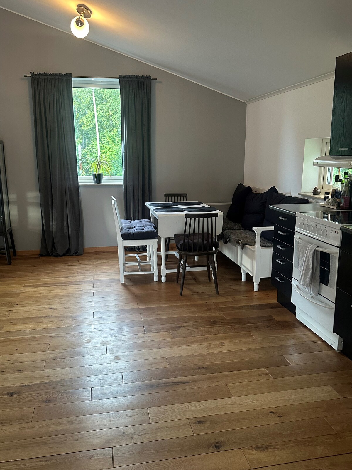 Okouzlující chata na okraji Norrköpingu. Pěší vzdálenost od jezera a lesa. 4 minuty od dálnice E4. 7 minut do Yxbackenu. 25 minut do zoo Kolmården. Nachází se v rezidenční čtvrti Jursla. Tady se probouzíš za cvrlikání ptáků a za šumění větru ve třešňové větvi. Je součástí objektu s hlavní budovou, ale má vlastní vchod a část zahrady. Jedna ložnice, jeden obývací pokoj s rozkládací pohovkou a jídelním koutem, plus kuchyň a koupelna. 500 metrů od místa vhodného pro koupání dětí, lesa a běžeckých drah. Autobus do 10 minut chůze.