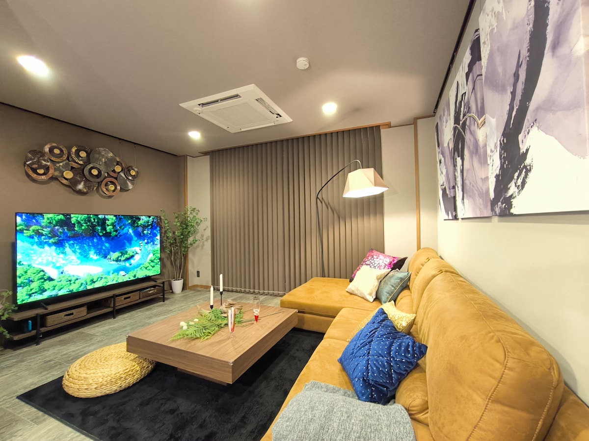 Nádherný výhled na● japonskou zahradu [Kuribayashi Park] Neobvyklý zážitek v prostoru obklopeném● uměním ●Maximálně 120palcový projektor pro maximální zážitek 30 sekund pěšky od● slavného udonového podniku, kde si můžete vyzkoušet domácí výrobu nudlí V blízkosti● nejdelší nákupní ulice v Japonsku, ideální pro nákupy Soukromý ●pronájem / až 5 osob / klidné prostředí / skupiny / páry / rodiny [Využijte jedinečnou příležitost v prostoru obklopeném uměním a filmem] Ideální místo pro návštěvu památek a relaxaci. Tento prostor, který je vyzdoben jedinečnými uměleckými díly místních umělců, není jen ubytováním, ale také speciálním místem, které poskytuje vizuální inspiraci. [Doporučené aktivity] Užijte si luxusní sledování videí z Netflixu, YouTube a dalších služeb na velkém 120palcovém promítacím plátně. *Prosím, použijte svůj vlastní účet. Můžete si vychutnat jak umění, tak i hudbu a videa. Po ranní procházce v čerstvém vzduchu v rozlehlém parku Kuribayashi si můžete vychutnat jídlo v nedaleké restauraci s udony nebo kavárně. Vychutnejte si místní suroviny. Když jste unavení, zapomeňte na každodenní shon a užijte si nezapomenutelné chvíle v tomto speciálním prostoru, kde se mísí umění a video.