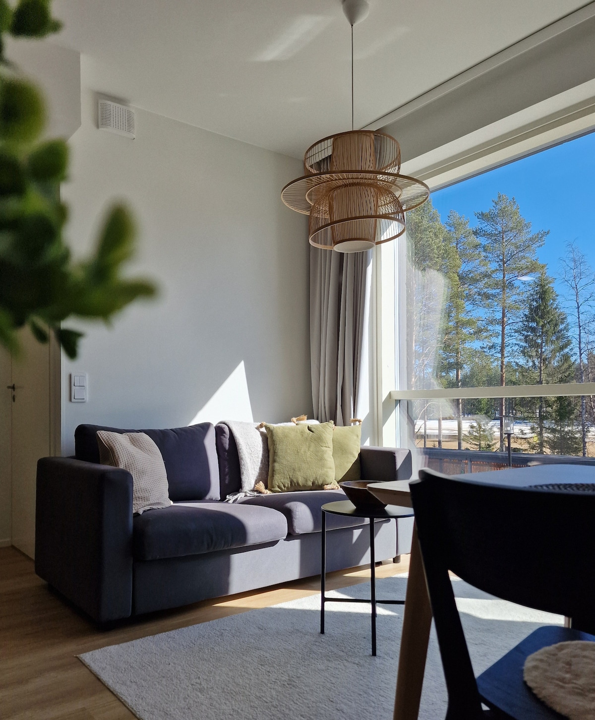 Sun Villas A23 je útulný a moderní dům uprostřed služeb Kalajoki Sandbanks. Dvoupatrový podkrovní byt je centrální, ale v klidné lokalitě, s pěkným výhledem na les z balkonu. Pláž, lyžařské stezky a turistické stezky jsou v docházkové vzdálenosti! Domácí mazlíčci jsou také vítáni! Apartmán má jednu ložnici s manželskou postelí, malou ložnici v patře a vstupní halu s pracovní stanicí. V obývacím pokoji je rozkládací pohovka. K dispozici je místo pro 4+2 osoby.