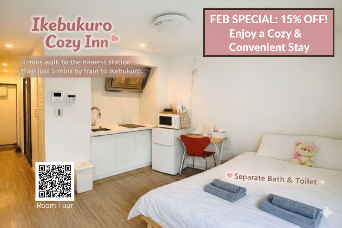 Celý byt v Tokiu | Poblíž Ikebukuro a Shinjuku | Samostatná koupelna a kuchyň | Velká postel | Odpočinková zóna v přízemí | Nový byt o ploše 15 m²