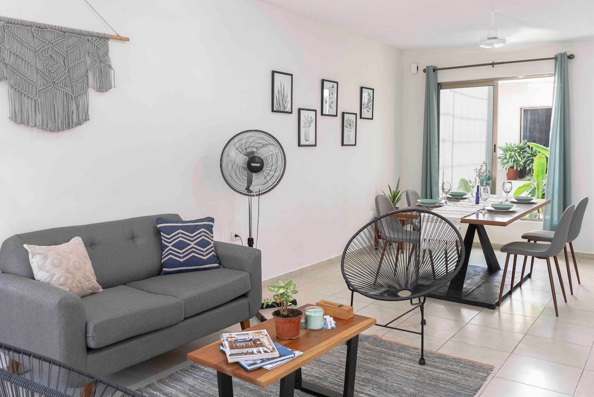 Pronajímá se celý dům na den, týden nebo měsíc, pro čtyři osoby, obývací pokoj, jídelna, dvě ložnice, s wifi, chytrými obrazovkami, teplou vodou, klimatizací, koupelnou a toaletou, má kuchyň, obývací pokoj, jídelnu, bazén. The house is located in a residential private with two parks 30 min away of progress and 20 minutes from the downtown area of Merida.