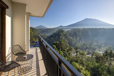Get your escape experience by 30 minutes from Sidemen and 15 minutes from Bali's mother temple Besakih of Mount Agung. This place offers the best view of Mount Agung, with expansive floor-to-ceiling windows that provide a breathtaking panorama of the mountain. Ať už si užíváš výhled ze svého soukromého balkonu nebo se ponoříš do přírodních krás z restaurace pod širým nebem, každý okamžik tady působí výjimečně.