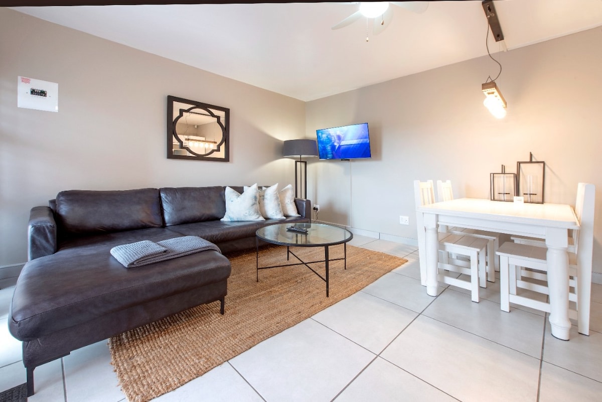 Tento nový moderní byt se nachází v centru a je elegantně dokončen na velmi vysoké úrovni. Elegantní a sofistikované, ale stále útulné a pohodlné. Mimo civilizaci se solární energií a uloženou vodou. Projdi se po nedotčených plážích nebo objevuj místní obchody. Kousek od Grahamstownu, ideální pro návštěvu rodičů!