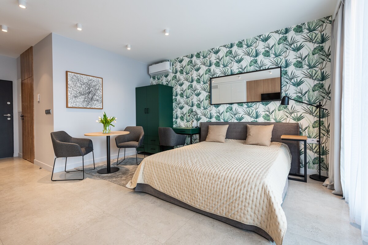 - Výborná poloha v centru Katovic na Sokolské ulici - Moderní infrastruktura - Expresní samoobslužný proces ubytování a odjezdu - Přístup do posilovny a sauny - Velký, zařízený balkon - V blízkosti parku a dvou nákupních center - V blízkosti zastávek veřejné dopravy - V blízkosti restaurací, kaváren a muzea - Pro 4 osoby - Klimatizace - Parkovací místo v garážové hale - Kosmetická sada, ručníky, ložní prádlo - Faktura s DPH (na vyžádání)