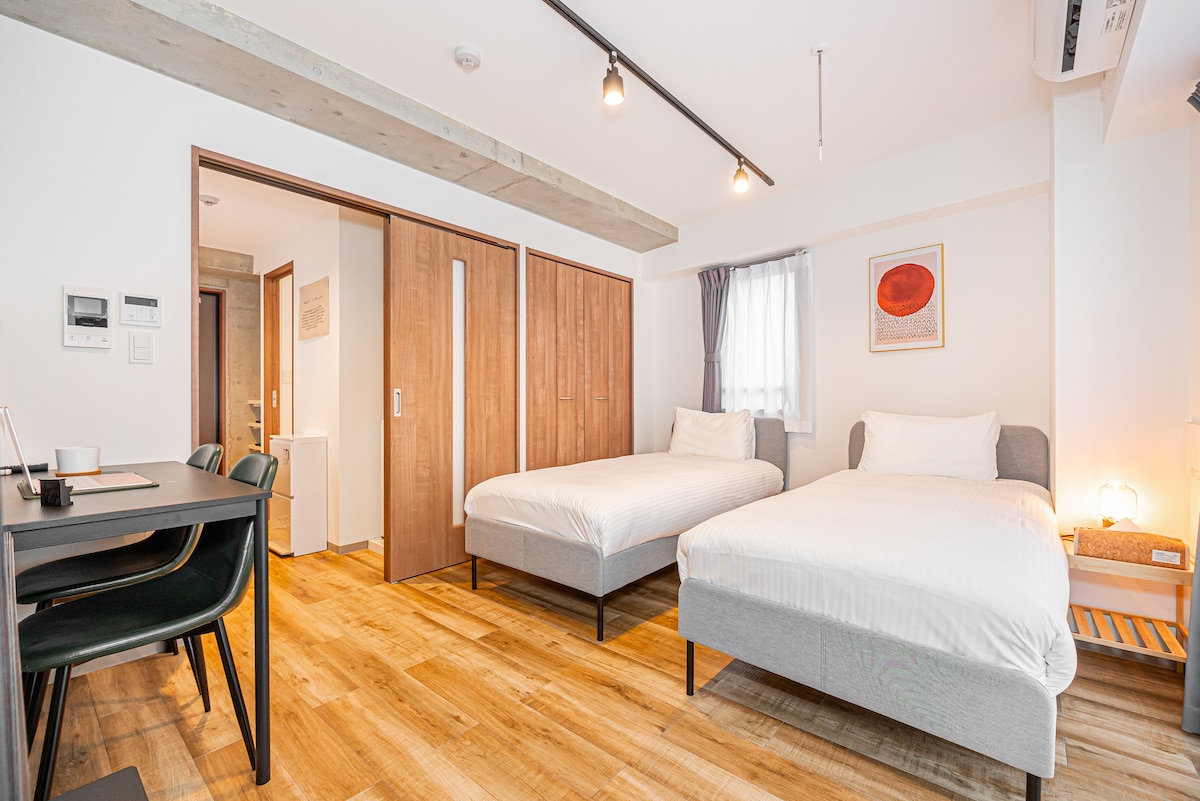 Klidné ・ Nová budova Japandi Studio| Poblíž JR ・ Metro| Prádelna a sušička v jednom| Výtah| Úschovna zavazadel