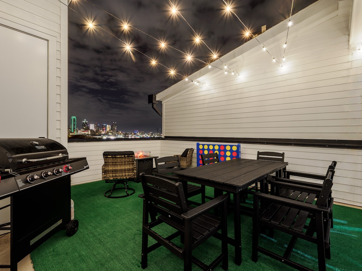 New Modern Dallas Skyline Rooftop, Firepit, Garage
