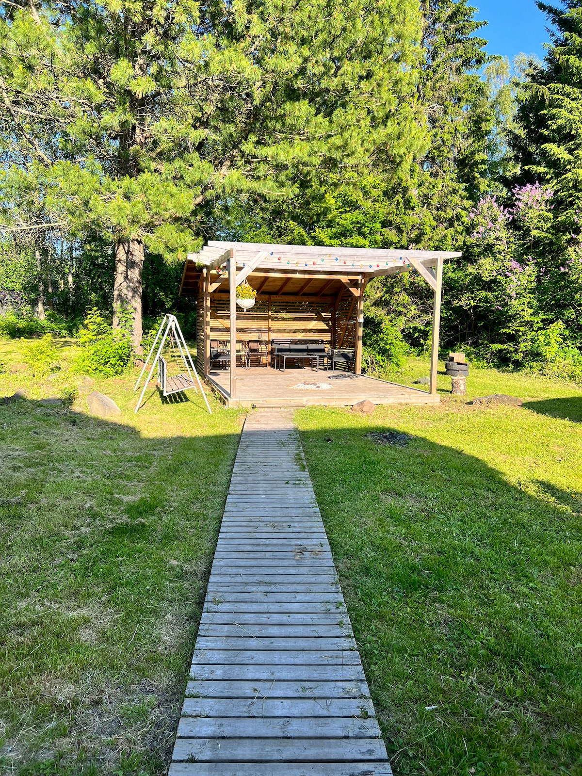 Well-equipped cottage on a large plot and next to river and nature. The cottage has sleeping places for eight + baby-size bed. Big outdoor sauna gives warm steams and barbecue hut is available for cooking and warming up. Outside we have plenty of different sorts of outdoor games and a play stand. Inside there are 2 TVs, game console and different board games.