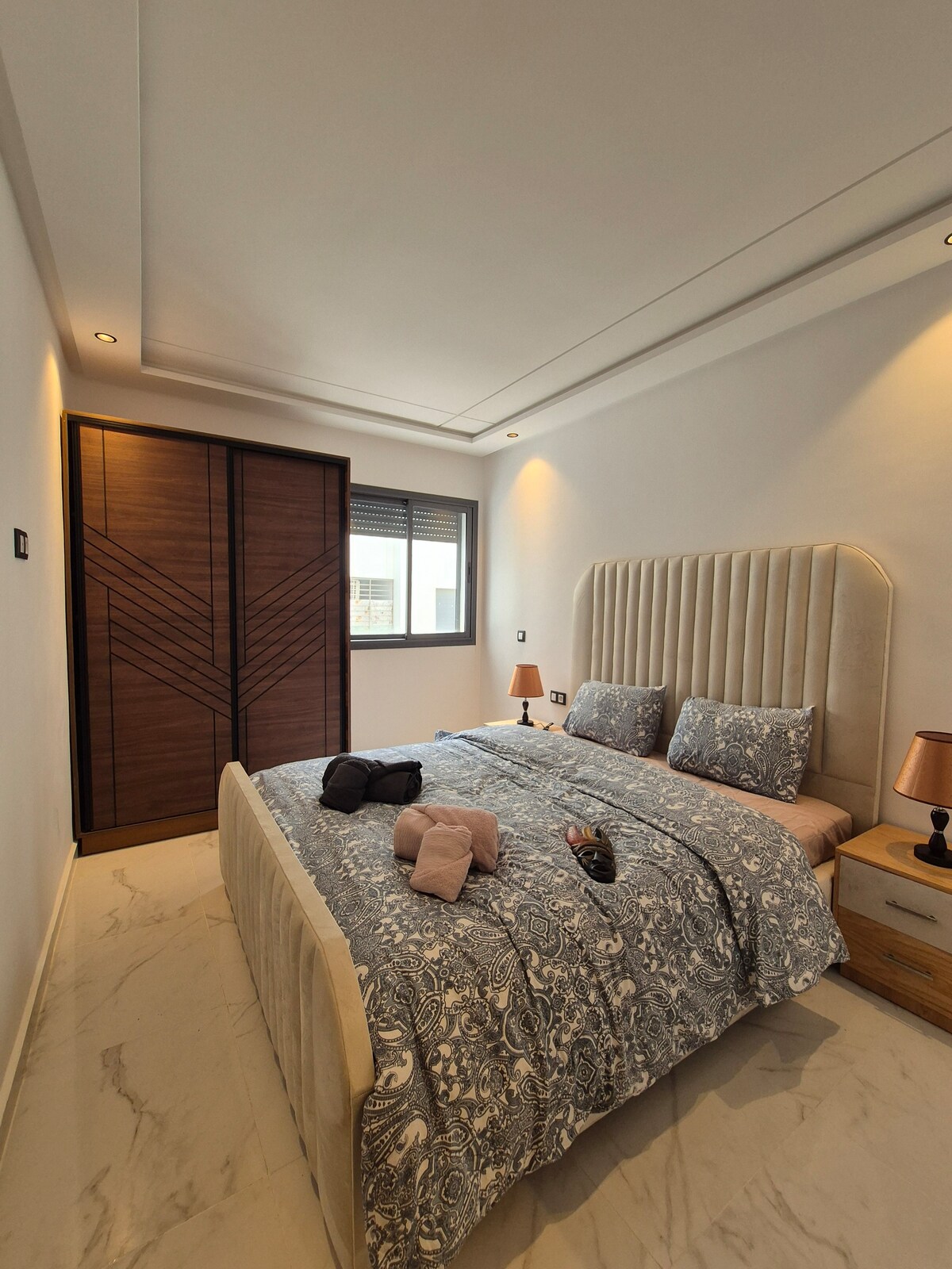 Bonjour En plein centre ville je loue mon Appartement meuble luxueux Lappartement est meublé avec des meubles de luxe achetés en 2022 inclus ecran tv sony plat 65 pouces netflix youtube satellite avec 2 CLIMATISEURS Tout est neuf ce dernier est tres bien situé carrefour en face et le calme total a l'immeuble parking 1 place reservé inclus dans le prix si besoin de qq chose juste a mappeler par telephone j'habite a cote vous etes les bienvenues