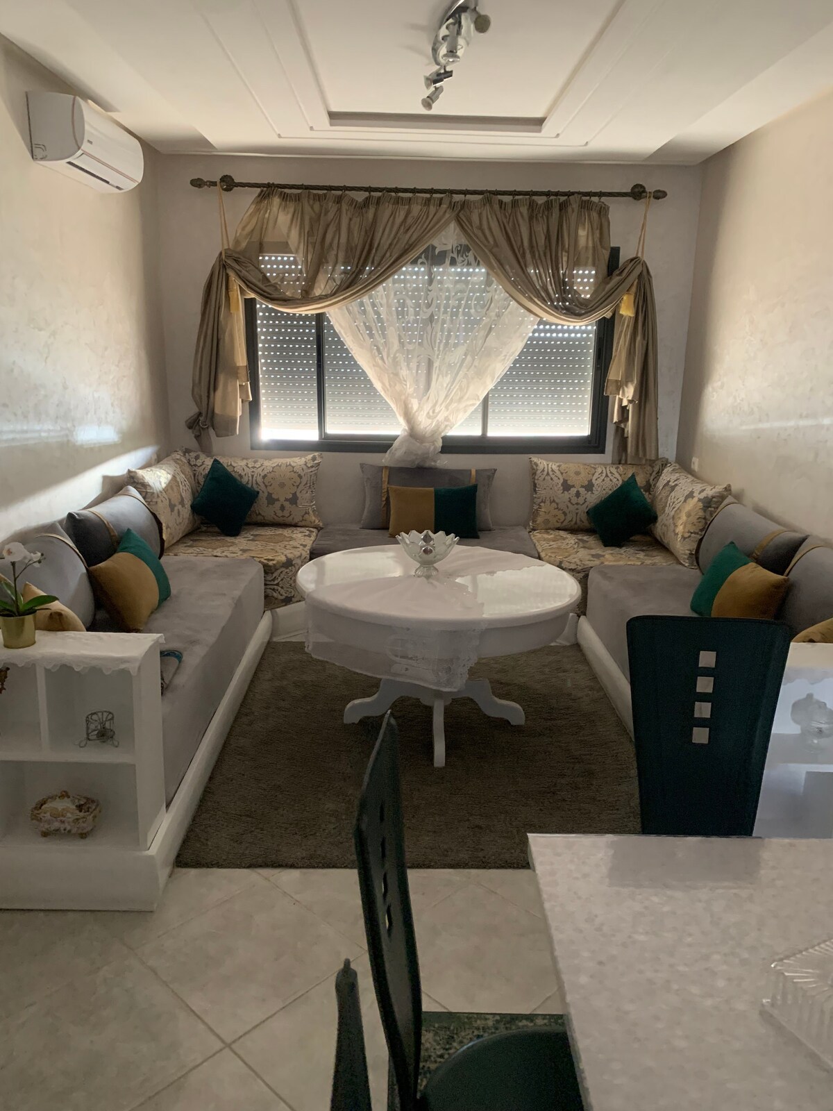 Book your stay in our brand-new apartment now for an unforgettable vacation with family or friends. Modern apartment located 5 km from Mehdia, in a new, quiet, and secure residence. Enjoy an outdoor pool, a gym, a ping-pong area, and private parking. The apartment features two comfortable bedrooms, two bathrooms, a fully equipped open-plan kitchen, and a bright living room with a balcony and pool views.