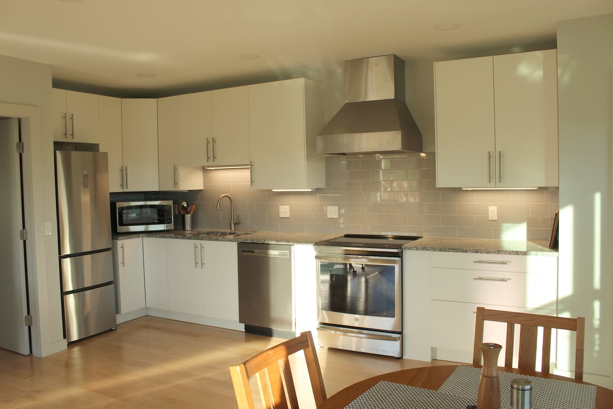This 1000ft² apartment has been thoroughly renovated and thoughtfully furnished. Ample cabinet space, butcher block countertops and stainless steel appliances in the kitchen. Rainfall shower head and ultra-large capacity smart washer/dryer set in the main bathroom. Comfy sectional, lift-top coffee table, 75" 4K TV, Roku Streaming Device, and Klipsch tower speakers in the living room. Master bedroom has a queen memory foam bed, a full closet, a half bath, and a side office.