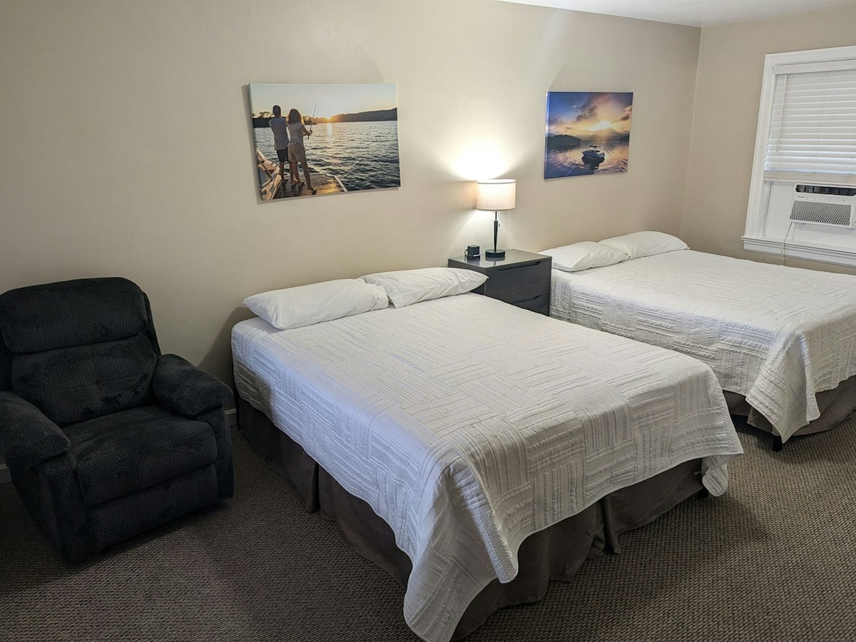Room 102 in a small 8 room motel. All rooms have 2 queen beds, 2 person dining table, TV with cable, wi-fi, coffee pot, small fridge/freezer, microwave, sink in living area, private bathroom, closet space, COLD A/C. Walking distance to the Cumberland River with gravel boat ramp. About 1 mile from Lake Cumberland boat ramp. Also 1-2 miles from national fish hatchery. Less than 5 miles from Kentucky State Dock. Perfect for fisherman, boaters, all lovers of the lake and river!